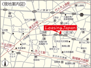 会社案内 社名 株式会社リーシングジャパン 代表取締役 沖野 元 所在地 〒151-0064 東京都渋谷区上原2-32-3 Y-2 Yamagataya Bldg.501号 TEL 03-5784-1613 FAX 03-5784-1650 営業時間 午前9時30分~18時00分 水曜定休 E-Mail info*leasingjapan.com ※ *を@に替えてメールして下さい URL http://leasingjapan.co.jp/ 事業概要 不動産賃貸仲介・売買仲介・リフォーム・管理・不動産コンサルティング 交通 京王井の頭線 駒場東大前駅より徒歩12分・池ノ上駅より徒歩12分・小田急線 東北沢駅より徒歩11分 代々木上原駅より徒歩12分 下北沢駅より徒歩19分 弊社案内図